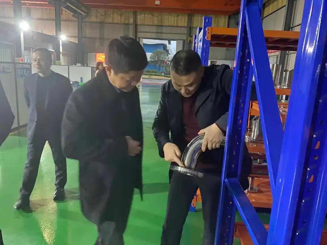 2023年12月11日下午,分宜城鄉(xiāng)供水一體化鞏固提升項目組分宜縣水利局局長葉明、政府辦秘書張釗,江西修江水利集團有限公司高級工程師、總監(jiān)周慶軍,分宜銀龍水務有限公司董事長袁云生等一行蒞臨新余銀龍水務設備公司參觀考察,我司總經(jīng)理陳科宇熱情接待項目組并陪同參觀與講解。