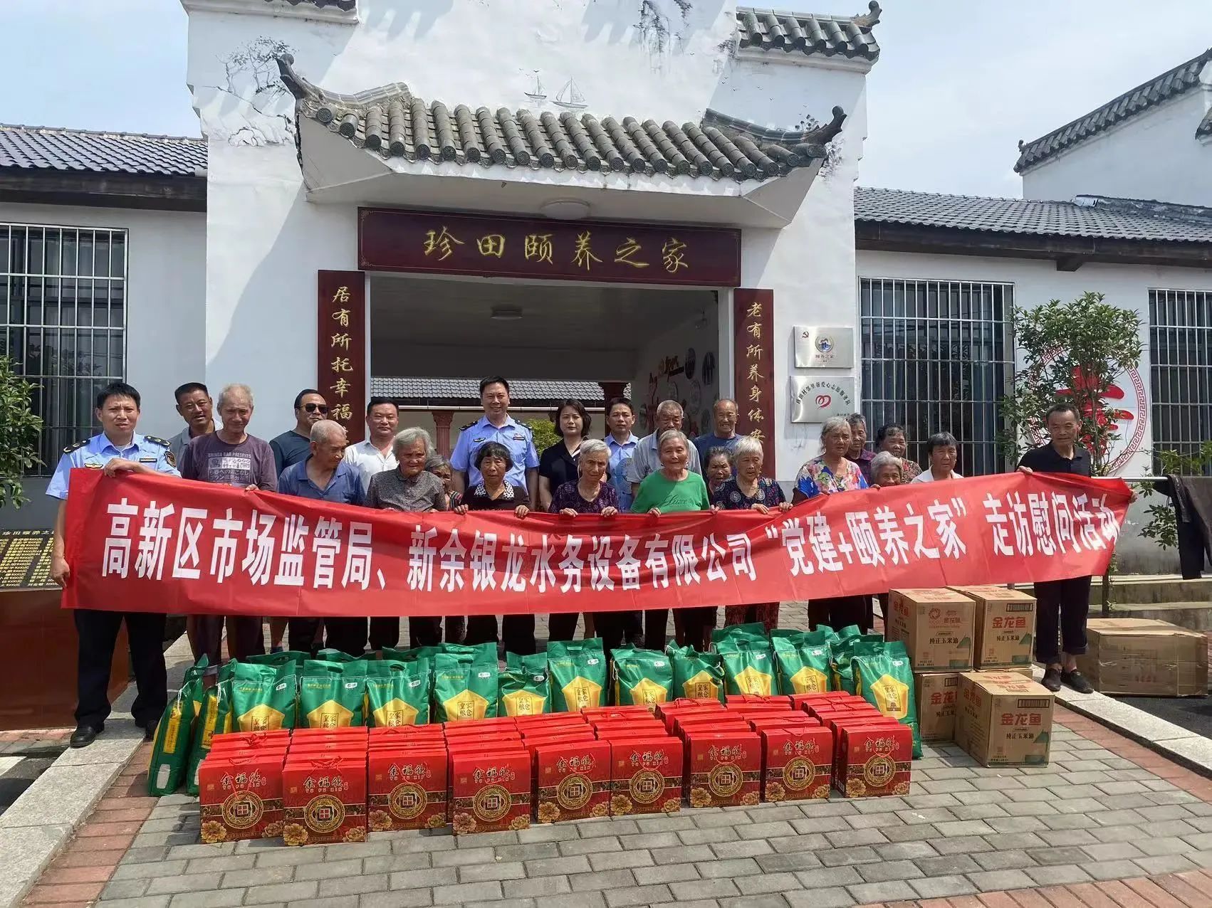 秋高氣爽,桂花飄香,在佳節(jié)來臨之際,高新區(qū)市場監(jiān)督管理局劉局、汪局等領導與新余銀龍水務設備有限公司副總經理李軍華到水西鎮(zhèn)珍田村“頤養(yǎng)之家”進行扶貧走訪活動。給“頤養(yǎng)之家”的老人們送上米,油,月餅等慰問品;并通過村委向頤養(yǎng)之家捐贈愛心扶貧款。